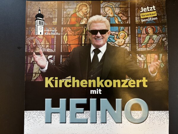 Anlässlich der 100-Jahr-Feier der Kath. Kirche Au tritt der bekannte deutsche Schlagersänger Heino mit seinen klassischen und bekanntesten Hits auf.